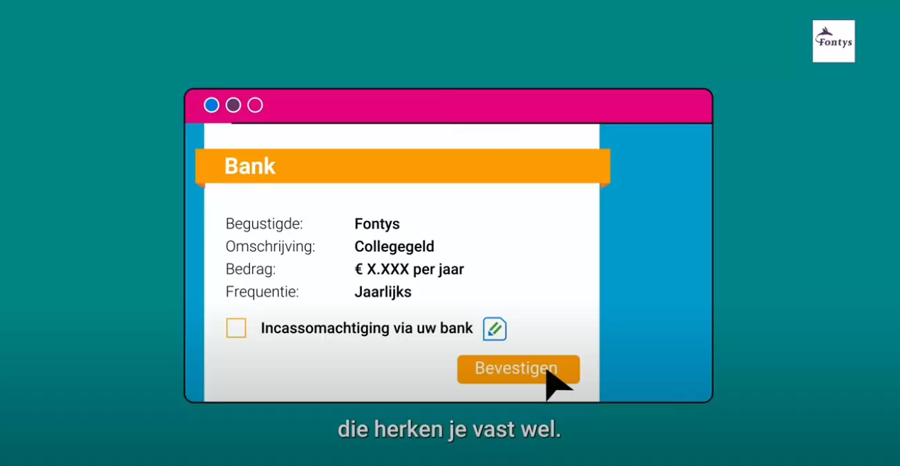 - Rond je inschrijving helemaal af. Vergeet niet om de digitale machtiging voor het betalen van je collegegeld te geven.