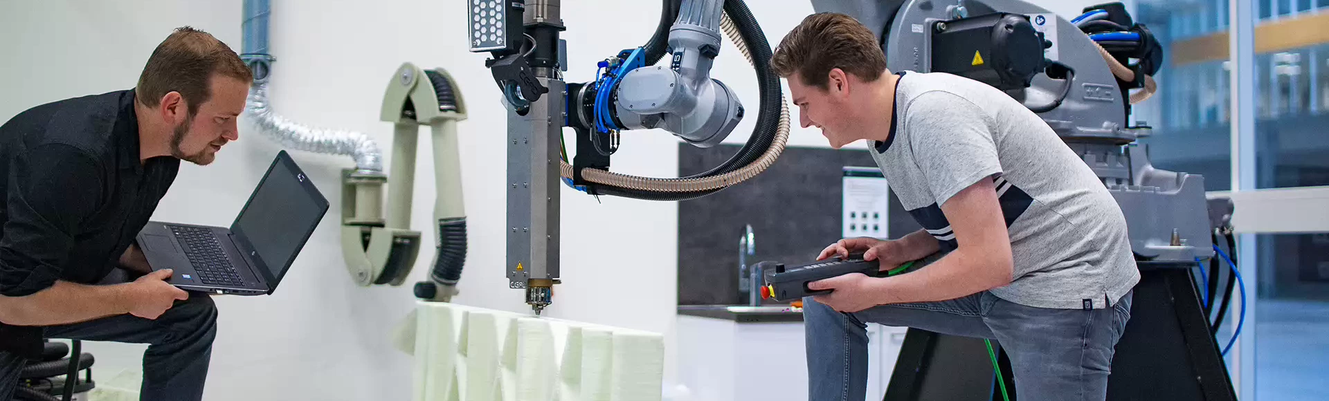 Onze studenten werken mee aan diverse uitdagende projecten binnen de voltijd- en deeltijdopleidingen én de minor Smart Product Development in Additive Manufacturing. In samenwerking met, en onder begeleiding van bedrijven werken zij aan actuele vraagstukken en ontwikkelen zij vernieuwende oplossingen. Stagiairs of afstudeerders worden ingezet bij vooruitstrevende bedrijven, waar zij direct bijdragen aan innovatie met concrete use-cases.