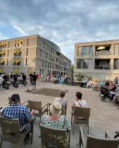 Jasper van der Wal van TBV Wonen leidde ons rond in de omgeving van zorgbuurthuis De Patroon waar ongeveer 500 – veelal minder draagkrachtige – ouderen (60+) wonen. Bij toewijzing van woningen stimuleert TBV Wonen een diversiteit in bewonerssamenstelling. In totaal wonen er ook 21 jongvolwassenen met een beperking en/of leerproblemen die door Prins Heerlijk begeleid worden naar zelfstandig wonen. In het gebouw Quilt kunnen zij, behalve van hun eigen appartement, ook gebruik maken van een gezamenlijke huiskamer.