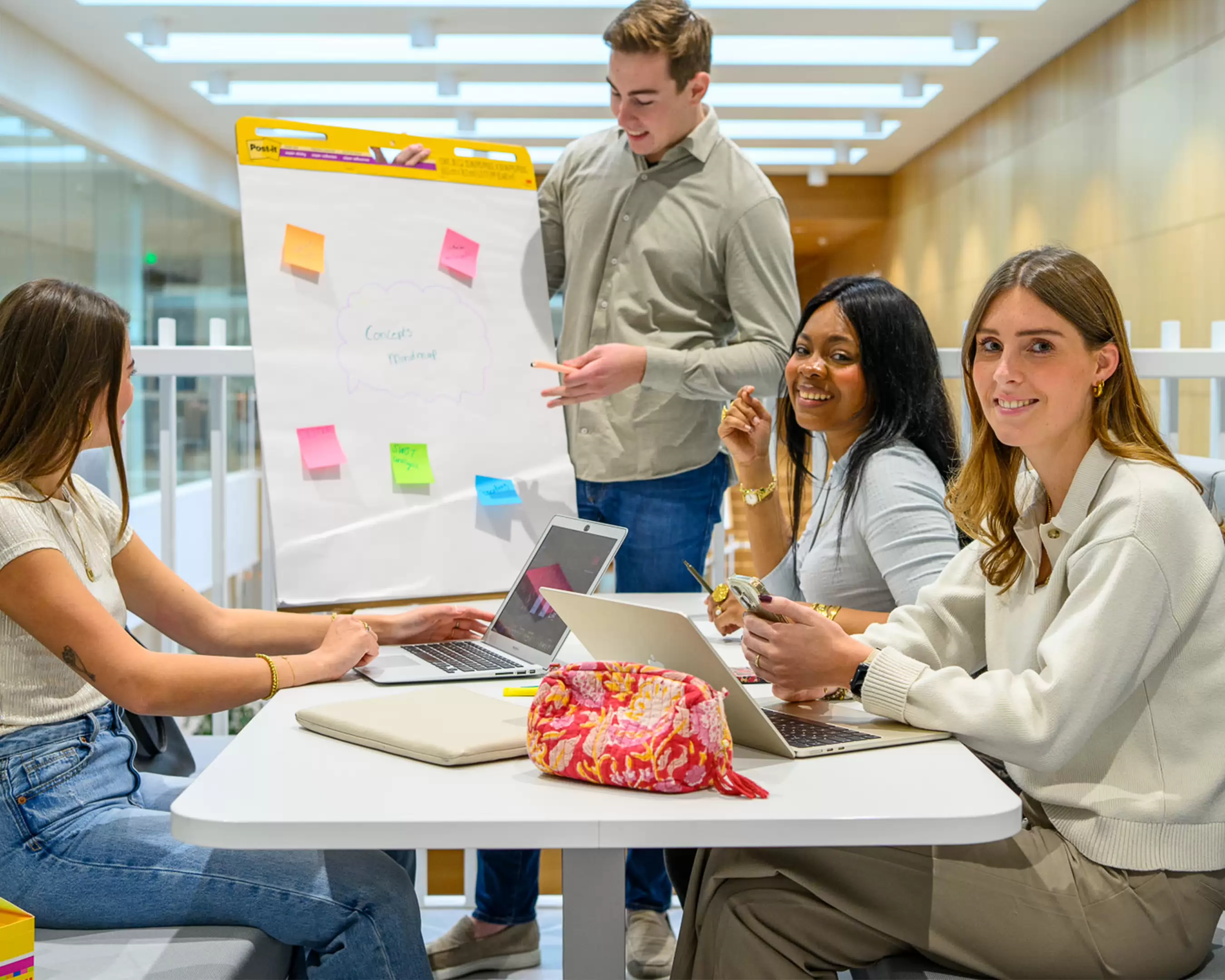 Studeren in het HBO is echt wel iets anders dan de middelbare school of het MBO. Daarom geloven we in Eindhoven in een zachte landing. We laten je wennen aan ons onderwijs en wat daarin van je gevraagd wordt. We laten je ieder kwartaal vanuit een andere invalshoek naar communicatie kijken. Merken, social media, influencers, events organiseren, media; het komt allemaal voorbij. En vanaf dag één ga je aan de slag voor echte opdrachtgevers, of het nu is om de nieuwe WK-snack voor Mora te bedenken en promoten of een nieuw parfum voor Van Gils in de markt te zetten. Tel alles op en na twaalf maanden ken je je toekomstige vakgebied een stuk beter.