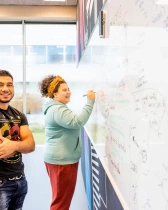 Wil je nóg meer leren over ICT? Kies dan voor de Master Applied IT. Zo kun je in 5 jaar je bachelor én masterdiploma halen. Een hbo-master bij Fontys heeft hetzelfde niveau als een universitaire master. Het diploma is dus gelijkwaardig. Bij de Master Applied IT leer je problemen goed te begrijpen en slimme oplossingen te bedenken.